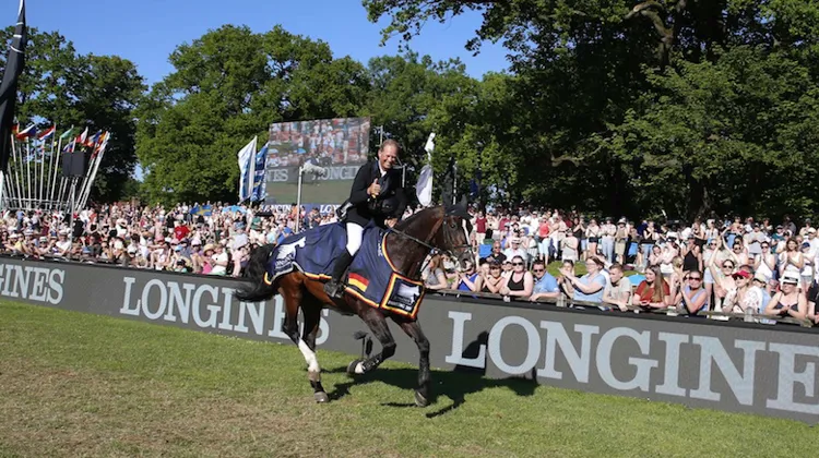 C'est désormais l'heure de la retraite pour Casall Ask. Au terme d'une tournée d'adieux qui l'a emmené de Genève à Hambourg en passant par Göteborg, l'étalon de légende est sorti par la grande porte samedi, en remportant l'ultime Grand Prix de sa carrière, celui du Longines Global Champions Tour de Hambourg. C'est donc devant vingt-deux mille personnes, certaines équipées de pancartes clamant "Au revoir Casall", venues le saluer que le bel Holsteiner a tiré sa révérence sur les terres de son propriétaire. Entouré d'une lice remerciant Casall, Rolf-Göran Bengtsson a ensuite rendu hommage à son fidèle compagnon, évoquant notamment leur victoire dans le LGCT de Doha, en 2014, rappelant à quel point il est le cheval de sa vie. Il y a eu quelques larmes, du côté du pilote, mais également dans le public, au moment de brandir des mouchoirs à l'effigie du cheval le temps d'un dernier tour d'honneur.
