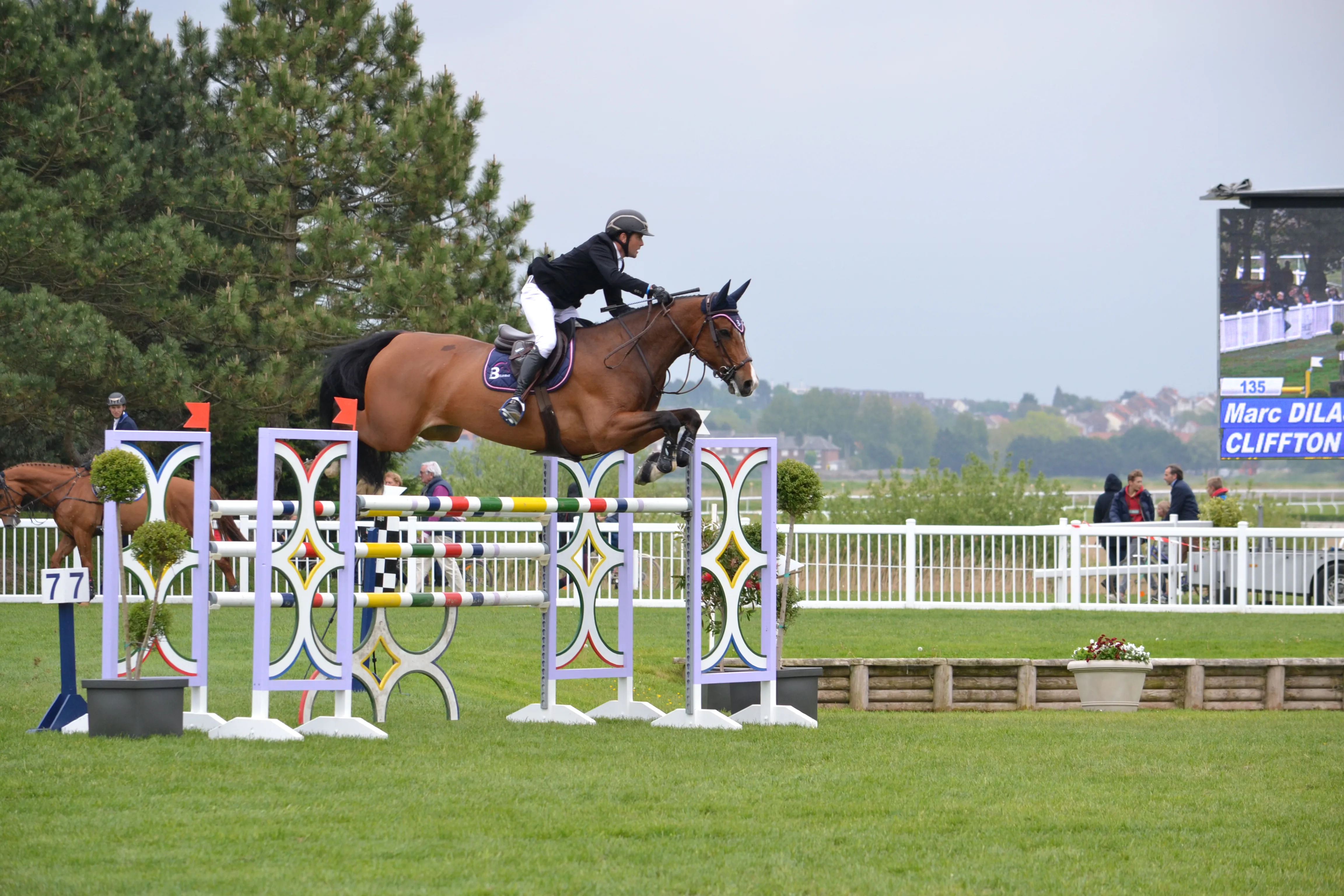 Ce grand prix 3* qui comptait cinquante couples au départ promettait dès la reconnaissance du parcours du beau sport. Le chef de piste international Jean-Philippe Desmaret proposait une épreuve en deux manches, technique, dont le temps imparti était fixé à 83 secondes. C’est d’ailleurs ce même chronomètre qui se révéla comme un des véritables juges de paix puisque à l’issue de la première manche, seuls cinq cavaliers parvinrent à boucler leur tour sans pénalités et dans le temps. Le premier à montrer l’exemple, le régional de ce concours Nicolas Delmotte, en selle sur son bondissant et rapide Darmani van’t Heike en 79’57 secondes. Il sera rejoint par Laurent Guillet, Marc Dilasser, l’amazone britannique Louise Simpson avec Grafit, et le Néerlandais Michel Hendrix avec Baileys. Avec un tout petit point de temps dépassé, les français Max Thirouin, Emeric Georges, Geoffroy de Coligny et Thomas Lambert ont également été les auteurs de très belles prestations. Autre difficultés majeures, l’obstacle numéro 1, un oxer massif très coloré et regardant posé face aux tribunes, les combinaisons, telles le double blanc numéro 9a et b et le triple en fin de tour de couleur jaune clair, avec en entrée un vertical, en milieu un très gros oxer puis en sortie un vertical ou encore le délicat oxer carré en numéro 7 situé à toute proximité du gué.Les français à domicile