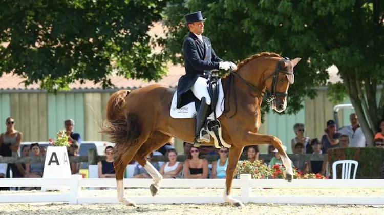 Dimanche, le Master Pro de Vierzon, avant-dernière échéance clé fixée par le staff fédéral, s’est achevé sur le sacre de Pierre Volla qui, avec Badinda Altena, a remporté le titre de champion de France pour la deuxième fois consécutive. ’’Je suis vraiment très content de cette victoire. J’étais venu pour défendre mon titre et j’ai réussi à le faire’’, s’est réjoui le Rhônalpin. ’’L’enjeu était important, avec toujours un peu de stress. C’est un véritable régal, ça fait trois ans que je gagne le Grand National de Vierzon.’’ Désormais, le couple qu’il forme avec sa bouillonnante alezane fait figure de chef de file de dressage tricolore, surtout en l’absence de Karen Tebar, dont les deux chevaux, Don Luis et Ricardo, sont en reprise de travail ou en convalescence pour blessure. ’’Badinda va très bien. Elle a montré qu’elle était capable d’enchaîner, à moi maintenant de reproduire ça sur les épreuves à l’étranger. Elle est en train de gagner en sérénité et le travail que nous faisons avec toute mon équipe paye. On a tout pour y arriver, les derniers réglages sont infimes, c’est ce qui rend aussi ce travail passionnant.’’