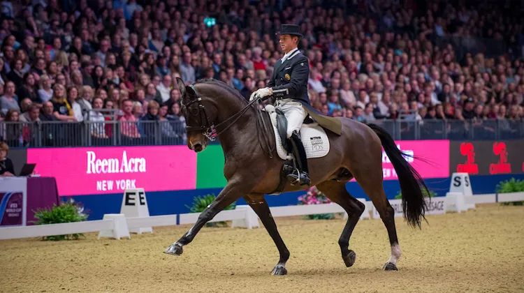 Le Grand Hall de l’Olympia de Londres était plein hier, pour la cinquième étape de la Coupe du monde de dressage, en plein cœur de Londres. Associé à Nip Tuck, il a inscrit la moyenne de 84.669%. Comme dans le Grand Prix, on retrouve les Néerlandais Hans Peter Minderhoud et Edward Gal derrière. Le tenant du titre, associé à son beau Glock’s Flirt, est donc monté sur la deuxième marche du podium (81.880%), devant Edward Gal avec Glock’s Voice (80.467%). Au pied du podium, on retrouve l’Irlandaise Judy Reynolds, qui, grâce à sa moyenne de 78.269% sur Vancouver K, pointe désormais en tête du classement général provisoire du circuit.