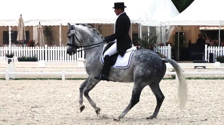 A. A. : Il y en a quelques-uns, oui ! En plus d’Axel et de Grandiosa, j’ai quatre chevaux qui peuvent dérouler le Grand Prix demain, tout comme Grete (Püvi, sa fiancée, dresseuse estonienne, ndlr). Dans mon piquet, j’ai So What, un fils de Scandic de dix ans qui est assez incroyable dans le piaffer-passage, Samira, une jument de neuf ans avec laquelle je pense débuter la compétition en début d’année prochaine, Grand Passion, que j’ai récupéré l’an passé, et enfin El Rei, un étalon avec lequel je dois encore caler les changements de pieds au temps mais qui présente de gros points forts, notamment dans les appuyers. Grete, elle, peut compter sur Talent, évidemment, mais aussi sur Aleandro, Summer ainsi qu’un cheval de sept ans.