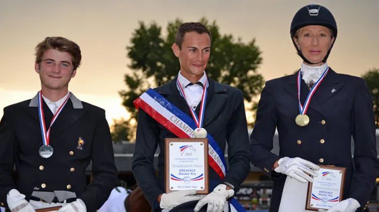 L’Ecole nationale d’équitation de Saumur accueille cette semaine et comme chaque année, les Masters Pro de dressage. Pour cette édition 2013, le premier titre de champion de France a été décerné vendredi en fin de journée, dans la catégorie Pro 2. A l’issue de deux jours de compétition, sur les reprises Saint Georges et Inter I, Arnaud Perrin s’est imposé avec son étalon Bonaparte, face à une concurrence particulièrement relevée.
