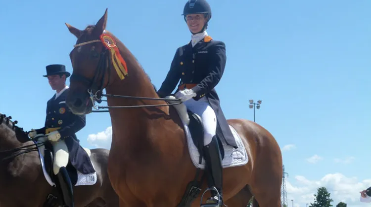 « C’est un coup réussi pour ce premier CDI 3* organisé à Deauville avec de bonnes conditions pour les cavaliers et une bonne organisation », commentait le sélectionneur national, Alain Francqueville. « Le niveau est plutôt bon et les étrangers ont déroulé de très bonnes reprises mais nous avons aussi trois couples qui se sont distingués depuis le début de la compétition : [Karen Tebar] avec [Florentino] 47 et [Claire Gosselin] avec [Karamel de Lauture] dans le Grand Tour et Corentin Pottier avec Gotcha dans le Petit Tour », ajoutait-il. En effet, dans le Grand Prix matinal de samedi, la victoire finale revient à la Néerlandaise [Stephanie Peters] en selle sur Unlimited puisque le couple obtient une belle moyenne de 69,298%. Derrière elle, on retrouvait le Portugais Nuno Palma Santos en selle sur Sal, qui prenait la deuxième place avec une moyenne de 68,894%, juste devant la Tricolore Karen Tebar avec Florentino (68,255%). Le couple a déroulé une reprise de bon niveau laissant présager de belles choses pour la suite. « Je suis vraiment contente de pouvoir concourir en France et surtout à Deauville. A l’époque où je vivais à Paris, j’avais engagé trois fois sur les épreuves nationales de dressage qui se déroulaient à Deauville mais à chaque fois mon cheval était malade (rires). Ce n’est que la première saison de Grand Prix de Florentino qui était arrêté longtemps pour cause de blessure, et je suis contente de son comportement dans le Grand Prix, il était concentré et avec moi tout au long de la reprise », confie l’ancienne cavalière olympique. « C’est un cheval qui a encore besoin de force et de technique et qui peut être « chaud » et me faire quelques mauvaises surprises mais je suis convaincue de sa qualité », continue Karen Tebar. Et Alain Francqueville n’en pense pas moins : « Je compte beaucoup sur ce couple car le cheval est de qualité et la cavalière a beaucoup d’expérience, qui d’ailleurs est présente à Deauville avec son entraineur Graf Hubertus Zedtwitz ». A la sixième place, une autre Tricolore a su prendre le meilleur de son cheval Karamel de Lauture, la jeune Claire Gosselin. Toujours en progrès, la cavalière sort de piste tout sourire avec une moyenne de 67,043%. « Claire a déroulé une bonne reprise avec un cheval expressif et une impression de facilité, cependant il reste toujours le piaffer à faire progresser », explique le sélectionneur. Les autres Français rencontrerons plus de difficultés à l’image de [Catherine Henriquet] avec un [Paradieszauber] sur l’œil et qui fera demi tour sur un piaffer (62,447%) ou encore de [Pierre Subileau] qui devait composer avec une [Talitie] des mauvais jours (62,34%). A noter aussi la participation du Japonais Hiroschi Hoketsu, présent à Deauville avec sa monture olympique, [Whisper] 115, qui prend la neuvième place avec une moyenne de 66,191%, après de grosses fautes dans le zig zag au galop et la ligne de changements de pieds au temps.