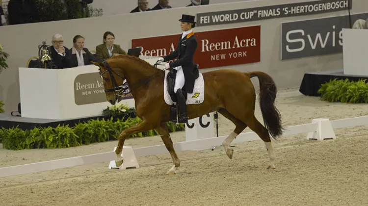 Alors que la Coupe du monde commençait aujourd’hui pour les cavaliers de dressage, la tenante du titre [Adelinde Cornelissen] a du attendre jusqu’à tôt ce matin pour savoir si oui ou non elle pourrait prendre le départ. En effet, lors de la visite vétérinaire de jeudi, son cheval [Parzival] n’a pas été accepté. Tout est finalement rentré dans l’ordre et la Néerlandaise s’est logiquement imposée dans le Grand Prix.