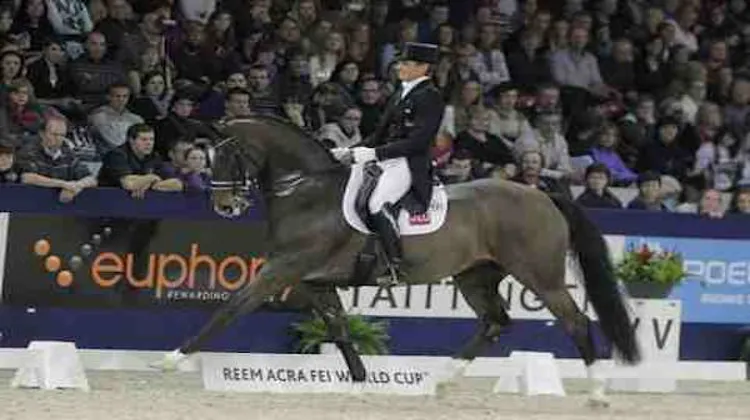 Le Hollandais Edward Gal et sa jument Sisther de Jeu remportent la sixième manche de la Coupe du monde de dressage, à Malines en Belgique, en s'imposant dans le RLM après une première domination dans le Grand Prix. Il devance son compatriote et compagnon Hans-Peter Miderhoud qui marque le nombre de points maximum que Gal cède automatiquement, en tant que porteur du titre d'ores et déjà qualifié pour la finale. Ulla Salzgeber est troisième avec sa jument alezane Wakana et garde la tête du classement provisoire Coupe du monde.