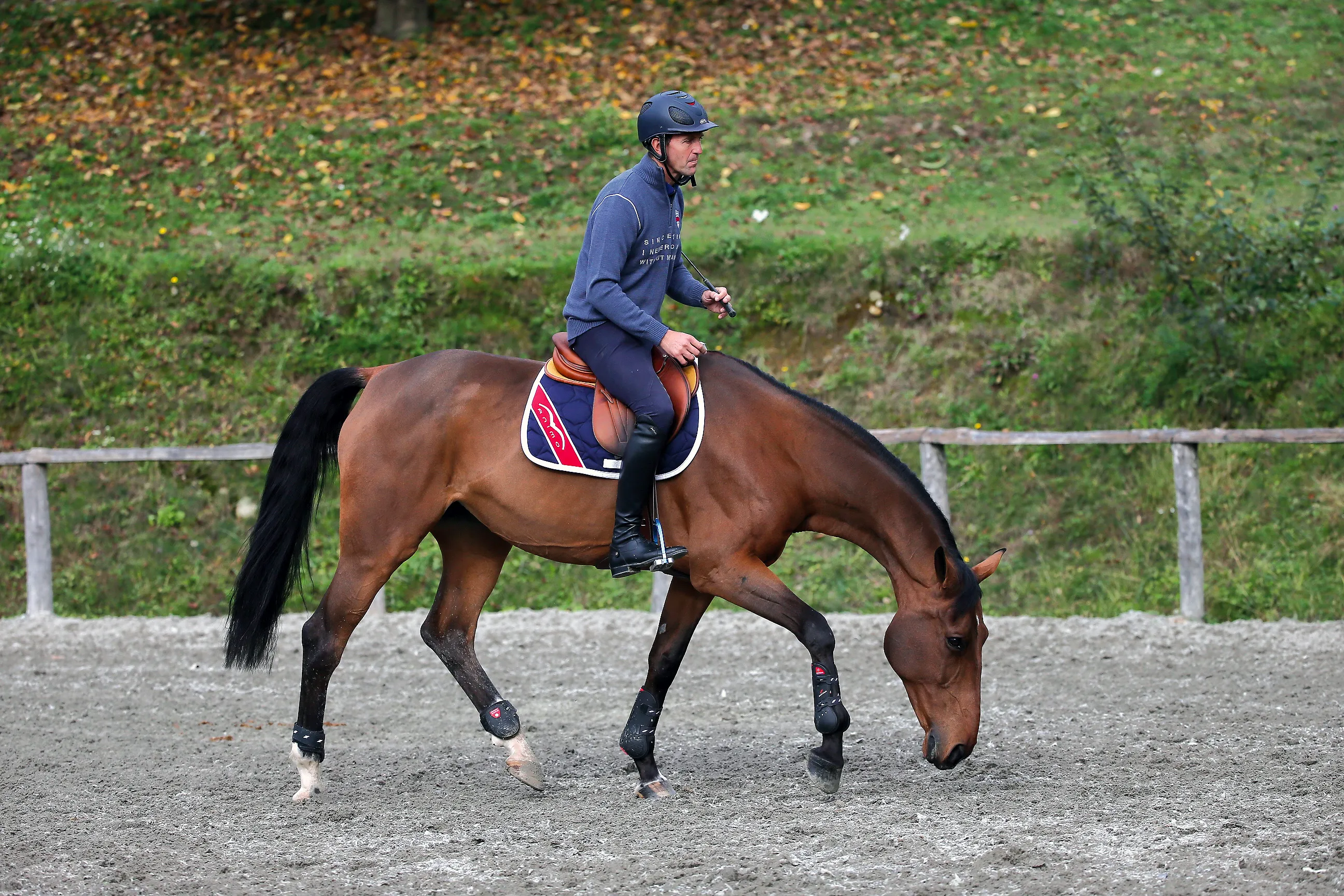 « L’éthologie m’a permis de retrouver cette fougue, cet amour de l’animal », reprend-il.« Auparavant, lorsqu’un cheval ne voulait pas faire quelque chose, je m’aidais d’accessoires. Par exemple, s’il refusait de baisser la tête, j’employais une paire de rênes allemandes ou une martingale. Aujourd’hui, j’essaie de comprendre pourquoi il veut monter la tête. Si cela résulte d’un stress, par exemple, alors je vais travailler à renforcer notre confiance mutuelle», s’enthousiasme le Transalpin. Jeux, travail en liberté et exercices de complicité articulent ainsi le quotidien des chevaux de Luca Moneta. Dans ses écuries d’Uggiate-Trevano, entre Varèse et Côme et à moins de dix kilomètres de la frontière suisse, ils paissent en groupes dans des paddocks verdoyants, jour et nuit d’avril à octobre.