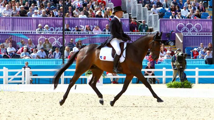 Troisième cavalier à s’élancer sur l’impressionnante carrière de Greenwich Park, premier représentant tricolore, Denis Mesples, en selle sur son Orégon de la Vigne, quitte le carré de dressage avec un score de 61,50, largement en deçà de derniers résultats du couple.