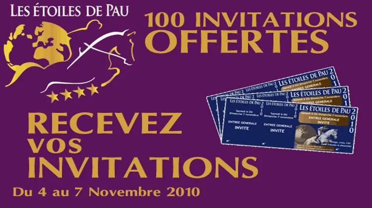 Les Etoiles de Pau, ça commence dans moins d’une semaine ! Pour admirer les champions de concours complet, sur place, rien de plus simple : indiquez vos coordonnées ci-dessous, et recevez deux invitations* !