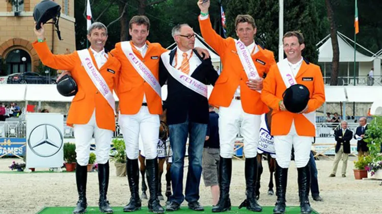 Enfin, les cavaliers tricolores ne seront pas en reste avec [Roger-Yves Bost] qui sera associé successivement à [Nippon d Elle] et [Myrtille Paulois]. [Patrice Delaveau] fera lui aussi le déplacement avec [Orient Express], [Ornella Mail] et Quenndal de Lojou, tous trois aux couleurs HDC. La meilleure amazone française, [Penelope Leprevost], emmènera [Topinambour], [Nayana] et Nice Stephanie à Rome tandis que son coéquipier [Kevin Staut] fera le voyage avec sa complice [Silvana]*HDC, mais aussi Estoy Aqui de Muze et [Zoncordes]. Enfin, [Marc Dilasser] complètera cette délégation française avec Qamaieu de Montsec et [Obiwan de Piliere]. Après les déconvenues rencontrées à La Baule pour la première étape, Henk Nooren a sélectionné cette fois-ci une équipe plus expérimentée qui, on l’espère, permettra à la France de remonter dans le classement provisoire suite à sa dernière place lors de l’étape française.
