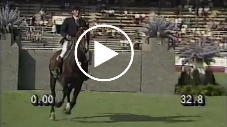 Eric Navet et Quito de Baussy lors des Jeux équestres mondiaux de Stockholm en 1990 (le couple terminera premier en individuel et premier par équipe):