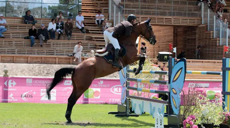 Seuls onze d’entre eux auront été conviés à disputer le barrage suite à un parcours sans faute en première manche. Ils auront été dix à boucler un double sans faute, mais [Patrice Delaveau] s’impose au chronomètre avec , [Nayana], âgée de onze ans, en un temps de 40’’27. « Le barrage m’a avantagé un peu parce que Nayana a une très grande action, et le chef de piste avait prévu un tracé assez coulant, et peu d’options, j’ai donc pu la laisser dérouler son parcours ». A quelques centièmes, [Marc Dillasser] classe [Mistinguette] à la seconde place en bouclant son parcours en un temps de 40’’55. « Je suis vraiment ravi de cette jument que je monte depuis un an. Elle a remporté récemment deux épreuves à ce niveau, dont l’une au Grand national de Lignières en Berry et l’autre à Deauville. Je ne suis que second, mais le plateau était très relevé. La jument est très régulière, très performante.. Elle avait gagné le championnat des sept ans d’une manière magistrale, et est restée presque deux ans sans faire de concours. Je suis très honoré de la ramener au plus haut niveau ». Troisième avec [Colombo Van den Blauwae], suite à un tour bouclé en 41’’26, [Eric Navet] se disait « satisfait de son cheval », âgé seulement de neuf ans, « très prometteur, que je suis en train d’aguerrir, car il était très en retard dans l’expérience lorsque nous l’avons acheté en début d’année de huit ans. Cette année il débute en grand prix et a été classé 3ème du CSI 3* du Haras de Bory. Il est de plus en plus régulier, je pense qu’il pourra tourner à haut niveau dès l’année prochaine. »