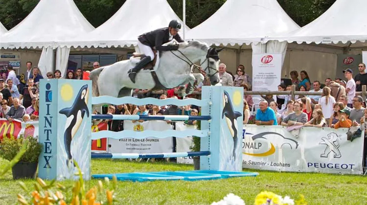 Une véritable réussite pour cette édition 2011 du Jumping international de Lons le Saunier qui rassemblait plusieurs milliers de spectateurs tout au long des quatre jours d’épreuves. Même la météo, souvent capricieuse sur le plateau de Montciel, y avait rajouté du brillant en ce dimanche de Grand Prix. Le chef de piste Jean-François Gourdin élaborait un parcours à la hauteur des cavaliers et de la dotation de 30,000 € ont mis les trente-six concurrents engagés sous pression. Ils ne furent que cinq à se retrouver au barrage, [Simon Delestre] échouant de peu pour un point de temps dépassé avec [Vancouver VDL], concluait ainsi à la sixième place. L’Australienne [Amy Graham] ouvrait le tracé final avec [Bella Baloubet] (Galoubet) mais en cherchant le chrono, accrochait deux barres. La Suissesse [Simone Wettstein] menait [Cash & Go] (Cash Cary) au sans faute sur un bon chrono de 42,37. L’Italien [Juan Carlos Garcia] signait alors un meilleur chrono malheureusement pénalisé d’une faute de [Moka de Mescam] (Melchior du Montois). Si la jeune [Emilie Martinsen] assurait le sans faute avec son magnifique [Apollo Bogegardens] ( Accord), le Britannique [Guy Williams] menait [Depardieu Vant Kiezelhoh] (Thunder) au devant de la scène sur un sans faute irréprochable avec près d’une seconde de moins.