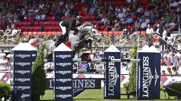 Le Grand Prix de Saint-Gall s’est joué en trois manches ! Une première partie en fin de matinée où Jessica Kurten démontrait toute sa volonté en signant l’un des trois sans faute du groupe avec Lektor. L’Américaine Christine Mc Crea en faisait autant avec Romantowitch Take One, tout comme Robert Smith qui qualifiait son nouveau Talan ! Le deuxième groupe prenait le départ à 13h40 sous un soleil de plus en plus contrarié par les cumulus. Shane Sweetnam avec Amaretto d’Arco, Khaled al Eid avec son Presley Boy, puis Pénélope Leprevost qui signait un parcours de toute splendeur avec l’étalon national Mylord Carthago*HN, rejoignaient le peloton des qualifiés dont faisaient déjà partie Nick Skelton et son Carlo. On attendait les ténors quand se fut le tonnerre qui l’emporta ! Qu’a cela ne tienne, Rich Fellers était lancé et rien ne semblait pouvoir stopper son Flexible qui sous le déluge réussissait un véritable exploit accompagné de pluies de grêlons . Tonnerre… d’applaudissement pour l’Américain qui rejoignait les écuries en un éclair... La tempête redoublait et le jury suspendait l’épreuve pour une demi-heure puis une de plus pour permettre au terrain détrempé de retrouver un peu d’adhérence. Cela ne suffit pas à convaincre tout le monde et le public fut ainsi privé des passages de quelques favoris dont Ben Maher, Kevin Staut, Philippe Lejeune, Simon Delestre ou encore Jos Lansink. Parmi les rescapés, Pius Schwizer rejoignait les neuf autres sans-faute pour la deuxième manche.