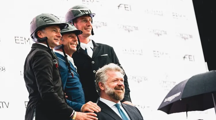 Auteurs d'un rapide barrage, les champions olympiques par équipe ont devancé de trois dixièmes Thierry Rozier et sa fidèle Venezia d'Ecaussinnes, qui ne cesse décidément d'enchaîner les succès au plus haut niveau après son double sans-faute dans la Coupe des nations de La Baule le mois dernier. "Je suis ravi. Philippe a gagné du temps sur le milieu du barrage, dans la courbe très serrée entre le vertical et l’oxer. Ça se joue à très peu, et je suis vraiment ravi pour lui, c’est un très beau retour pour Rahotep et lui. Je suis très content de partager le podium avec Philippe, on préfère bien évidemment garder ça en famille, en plus sur les deux plus belles marches ! (rires) Vénézia d’Écaussines va très bien, je fais très attention à la garder en bonne condition car c’est ma seule jument de tête. Je n’étais pas sûr de courir le barrage, et puis, finalement, je me suis laissé tenter, c’était une bonne idée de l’avoir fait, elle a très bien sauté !"