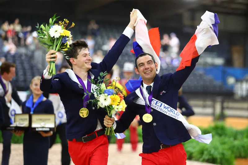 Lambert Leclezio a offert à la France sa première médaille d’or cet après-midi à Tryon, où les huitièmes Jeux équestres mondiaux s’achèvent demain. Déjà sacré en 2016 au Mans sous les couleurs de l’île Maurice, celui qui est devenu français par la suite a triomphé au terme d’un second Libre absolument sublime. Coup de chapeau à son cheval Poivre Vert, longé par François Athimon et déjà couronné il y a quatre ans avec Jacques Ferrari. C’est la deuxième médaille pour la délégation tricolore après le bronze décroché par son équipe de concours complet.