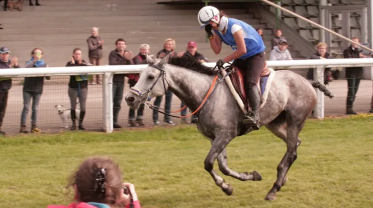 Elle l'emporte donc avec Teotihuacan de Greys au terme d'une dernière boucle menée à grande vitesse avec des pointes à 42 km/h ! À huit ans ce hongre très froid avec une récupération incroyable, rentrant au vet tout de suite, est plein de promesses.
