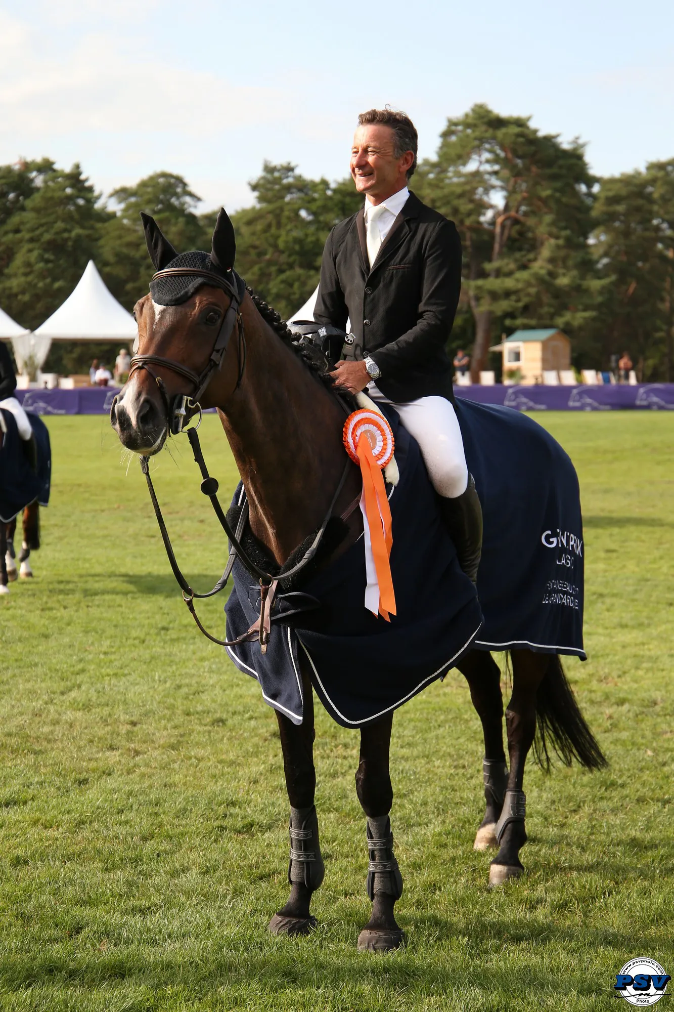 Le Summer Tour de GRANDPRIX CLASSIC s’est achevé hier à l’occasion d’un Grand Prix palpitant. Les cavaliers au départ de l’épreuve majeure du CSI 2* ont honoré le Terrain d’Honneur bellifontain en présentant un podium cent pourcent français ! Parmi les favoris, il y en a un qui n’a définitivement pas déçu les férus de sport venu assister au spectacle dominical. En effet, la bien nommée Star a permis à Thierry Rozier de s’imposer dans l’épreuve aux couleurs de Zandoná. Le duo a survolé les barres à 1.45m, transformant les difficultés du parcours en formalités. “C’était facile, il n’y avait pas de concurrence !” a ironisé Thierry Rozier pendant la remise des prix. Pourtant, son coéquipier Nicolas Delmotte a mis la barre très haute lors du barrage. De nouveau en selle sur Darmani van’t Heike, le Nordiste s’est démené pour réussir le doublé et a en bouclé un superbe sans-faute en 38“10. Mais les lauréats ont joué avec le feu. Venus en voisin, ils ont osé prendre des risques en bouclant un parcours plus rapide de quatre-vingt-sept centièmes. “Je suis super content parce que ma jument a très bien sauté ! Cela faisait trois semaines qu’elle n’avait pas fait de concours, depuis Lausanne. Il est vrai qu’après Chantilly, j’ai dû pas mal travailler, et la semaine dernière j’ai préféré déclarer forfait parce que j’étais peu performant. Résultat, ce week-end tout le monde était bien en forme, surtout que ma jument est très rapide”, a-t-il ajouté.