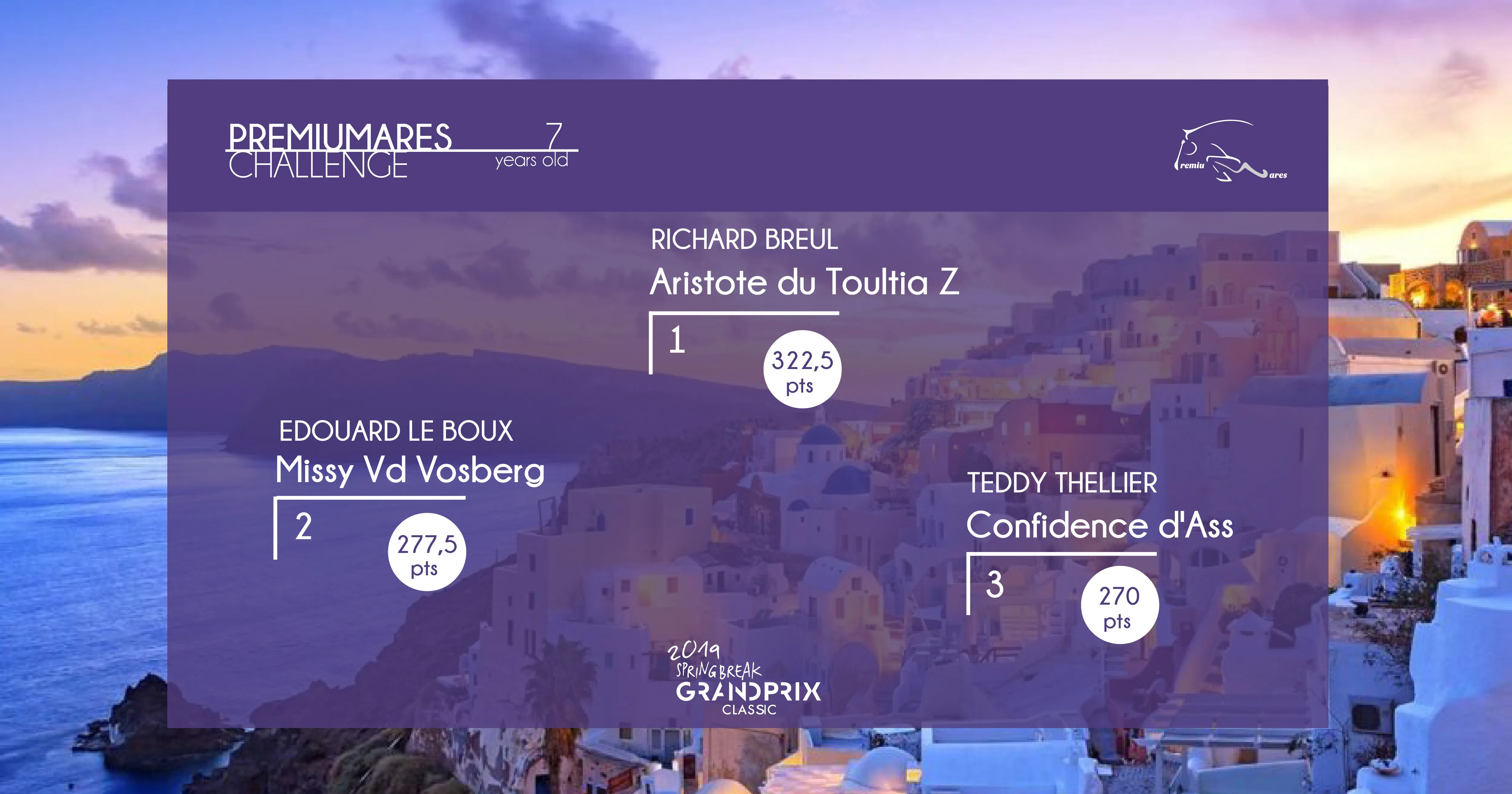 La première étape des Challenges PremiuMares des Jeunes Chevaux a pris place lors de GRANDPRIX CLASSIC Spring Break. Ces challenges visent à récompenser les jeunes chevaux de 6 ans et de 7 ans ayant réalisé les meilleures performances à l’issu de GRANDPRIX CLASSIC Spring Break, Summer Tour et LONGINES DEAUVILLE CLASSIC (uniquement pour les 7 ans).