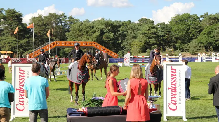 Dans les autres épreuves courues aujourd’hui : à 10h, trente-sept partants se succèdent sur le Petit Parquet et c’est Pierre Breton qui s’impose dans l’épreuve du Prix Or Vet à 1,25m au chronomètre, en selle sur Vogue de Jai en 64"66 devant Teddy Thellier et Affixe du Valon et Baptiste Couperie sur Appolon Bleu. Le podium est très jeune et prometteur puisque les trois montures ont respectivement huit et sept ans.Les cavaliers enchainent rapidement à 12h30 sur une épreuve à 1,30m, le Prix Grand Prix, sur la Carrière des Princes. Les obstacles fautifs sont ceux situés le long du public : un oxer isolé suivi d’un triple. Le double oxer/vertical coloré sur la diagonale fera également des dommages. S’élançant dans les premiers, Ludovic Gaudin, décidément en forme tout au long du week-end, fait une nouvelle la preuve qu’il est un cavalier très rapide : il boucle un tour impressionnant de facilité avec sa fidèle Tamara Landa en 59"91 ! Le second couple, Stéphane Frey en selle sur Romance de St Simeon, termine en 62’41, c’est dire la belle performance de Ludovic Gaudin. Sur la troisième marche du podium on retrouve le régulier Nicolas Layec avec Vischna en 63’59.
