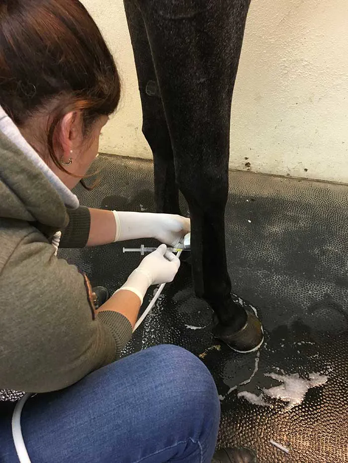Les chevaux présentés seront examinés notamment par un examen IRM avant et après traitement par injection intra-articulaire de fibroblastes gingivaux.