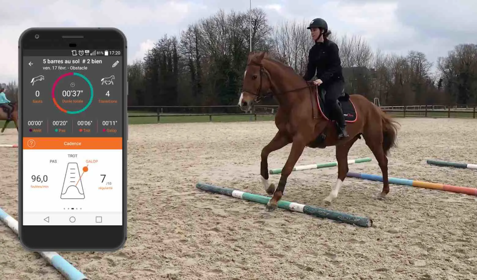 Nous savons que la cadence et sa régularité sont des indicateurs clefs d’un bon galop. Pour identifier la cadence qui correspond au galop idéal, nous avons utilisé EQUISENSE Motion sur un exercice type qui permet au cheval de se mécaniser et au cavalier de se concentrer sur ses sensations.