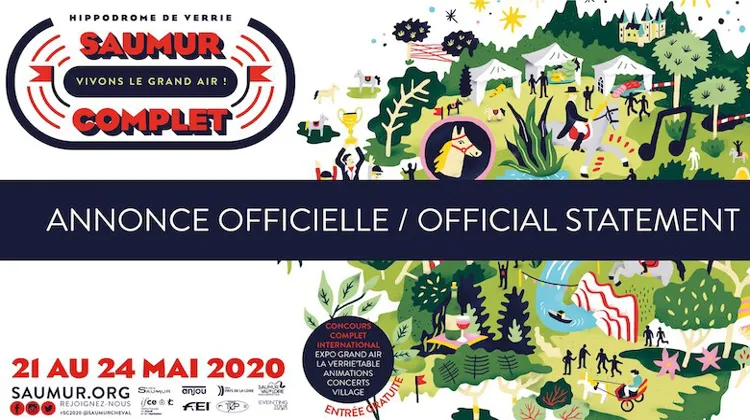 “Face à la propagation du virus Covid-19 en France et à l’étranger, l’équipe du Comité Équestre de Saumur a œuvré pendant plusieurs semaines en collaboration avec la FFE, la FEI et les autorités sanitaires compétentes pour envisager des solutions permettant de maintenir l’évènement Saumur Complet 2020 du 21 au 24 mai.