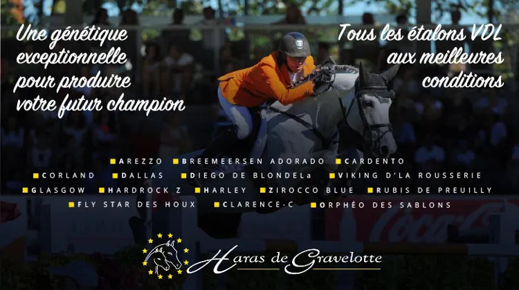Le haras de Gravelotte collabore également avec VDL Stud, un partenaire néerlandais reconnu dans le monde entier. Wiepke van de Lageweg, qui a fondé cette structure dans les années 1970, est considéré comme l’un des plus grands éleveurs et étalonniers du monde. Cette alliance permet à Claire Bresson de proposer à la reproduction des stars absolues comme Cardento, Glasgow, Dallas, Zirocco Blue (ex-Quamikase des Forêts) et Arezzo VDL, ces deux derniers ayant été labellisés “Preferent” par le stud-book KWPN. À noter que les étalons VDL sont proposés par le haras de Gravelotte sous un contrat qui les garantit à 100% sur le montant propre de la saillie.
