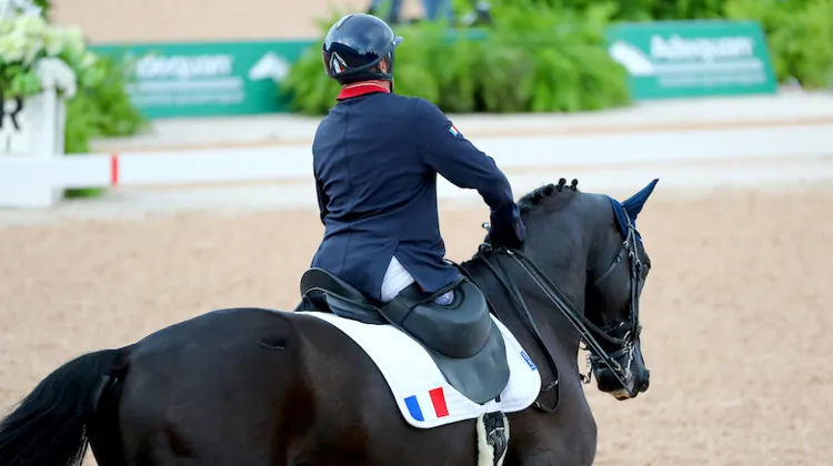 Ici aux Jeux équestres mondiaux de Tryon, Vladimir Vinchon est l'un des seuls de l'équipe de France à pouvoir encore monter à cheval.