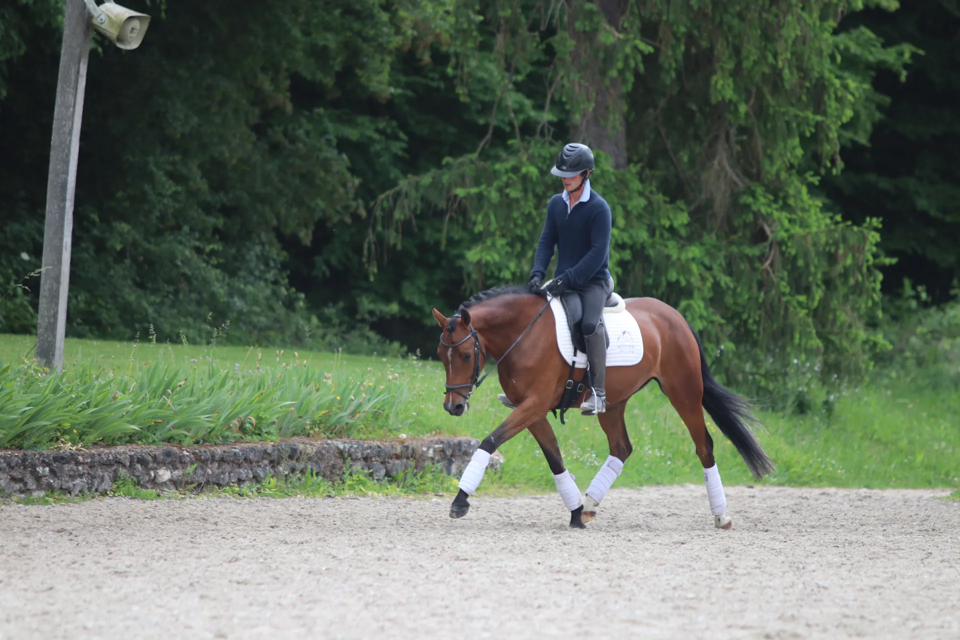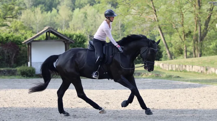 Pour parvenir à cette qualité de relation avec la bouche, l’équidé doit être dynamique et avoir les postérieurs énergiques et engagés. Selon son âge et son niveau, il est possible d’intégrer quelques exercices latéraux, de quoi débuter une gymnastique d’assouplissements : épaules en dedans avec un angle modéré, cession à la jambe avec peu de croisement, grandes hanches en dedans, appuyer couvrant toute la longueur, etc. On peut en parallèle vérifier si son cheval est dans les aides, réactif aux jambes, droit dans le couloir des rênes, canalisé par la main et le mollet extérieurs du cavalier, réceptif aux demandes de flexion et d’incurvation. Lorsqu’il semble attentif, malléable, souple et connecté, il est temps de passer à l’allure supérieure.