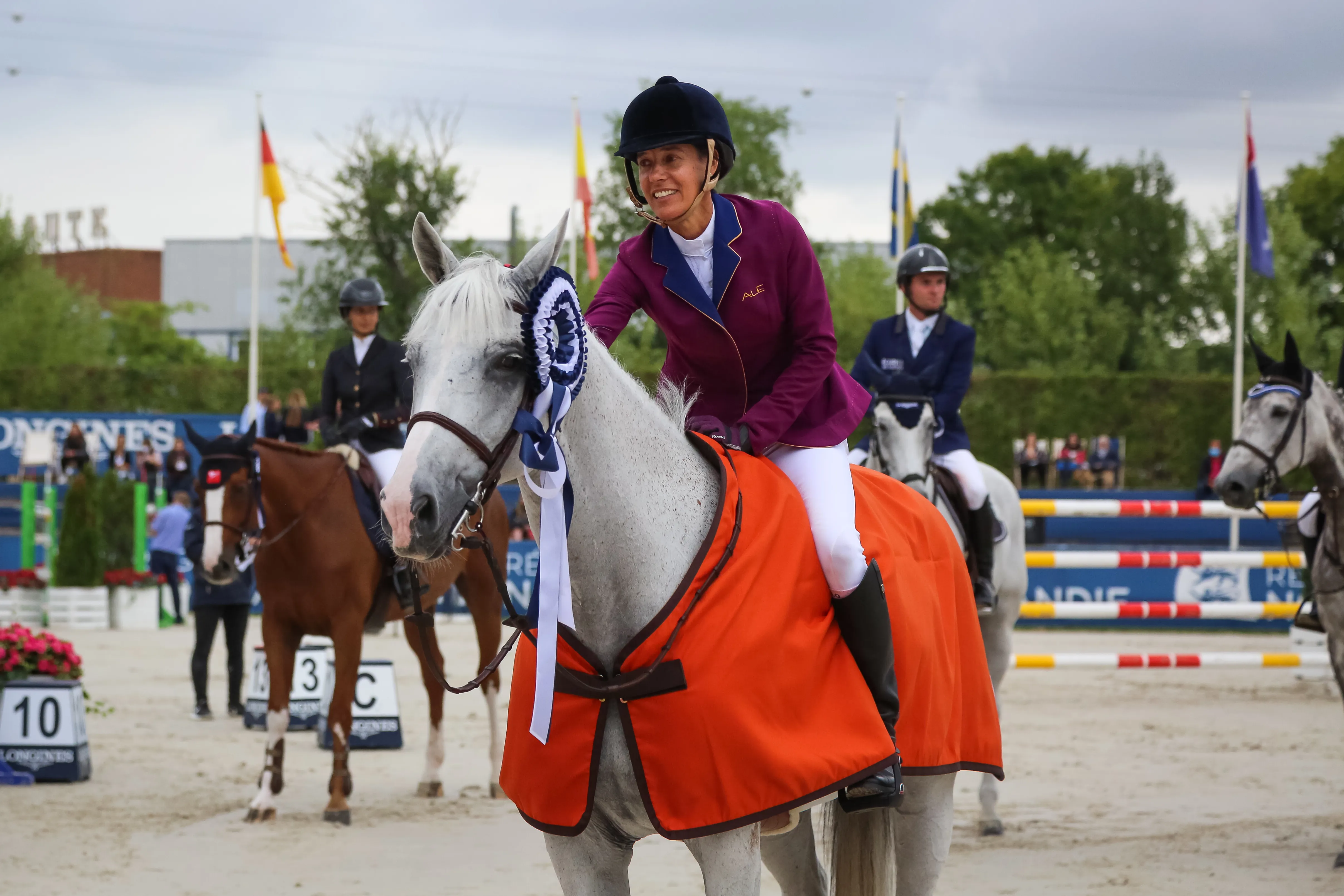 Il y a d’abord eu Luciana Diniz, auteure d’un superbe barrage avec Vertigo du Désert. Sans pourtant secouer le tapis et malgré les sacrés bons du gris par Mylord Carthago – l’ancien complice de Pénélope Leprevost justement -, la Portugaise à la veste fuchsia a bouclé son barrage en 39“40, prenant ainsi la tête des opérations. Derrière elle, de très sérieux prétendants à la victoire se sont élancés, sans parvenir à faire mieux. Déjà deuxièmes de l’épreuve majeure hier derrière Julien Épaillard et Quincy Lady, les supersoniques Guy Williams et Rouge de Ravel ont à nouveau dû se contenter de la place de dauphins aujourd’hui. Le Britannique installé depuis de nombreuses années en Normandie a conclu l’épreuve en 39“42 avec son fidèle étalon de quinze ans. Tout sourire - comme souvent - Luciana Diniz s’est donc imposée après s’être déjà qualifiée pour le barrage hier en se classant quatorzième de la première qualificative.