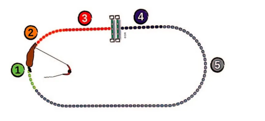 • Zone 5 : sur cette zone, le longeur doit simplement maintenir le contrôle et l’ordre du tracé et de la vitesse.