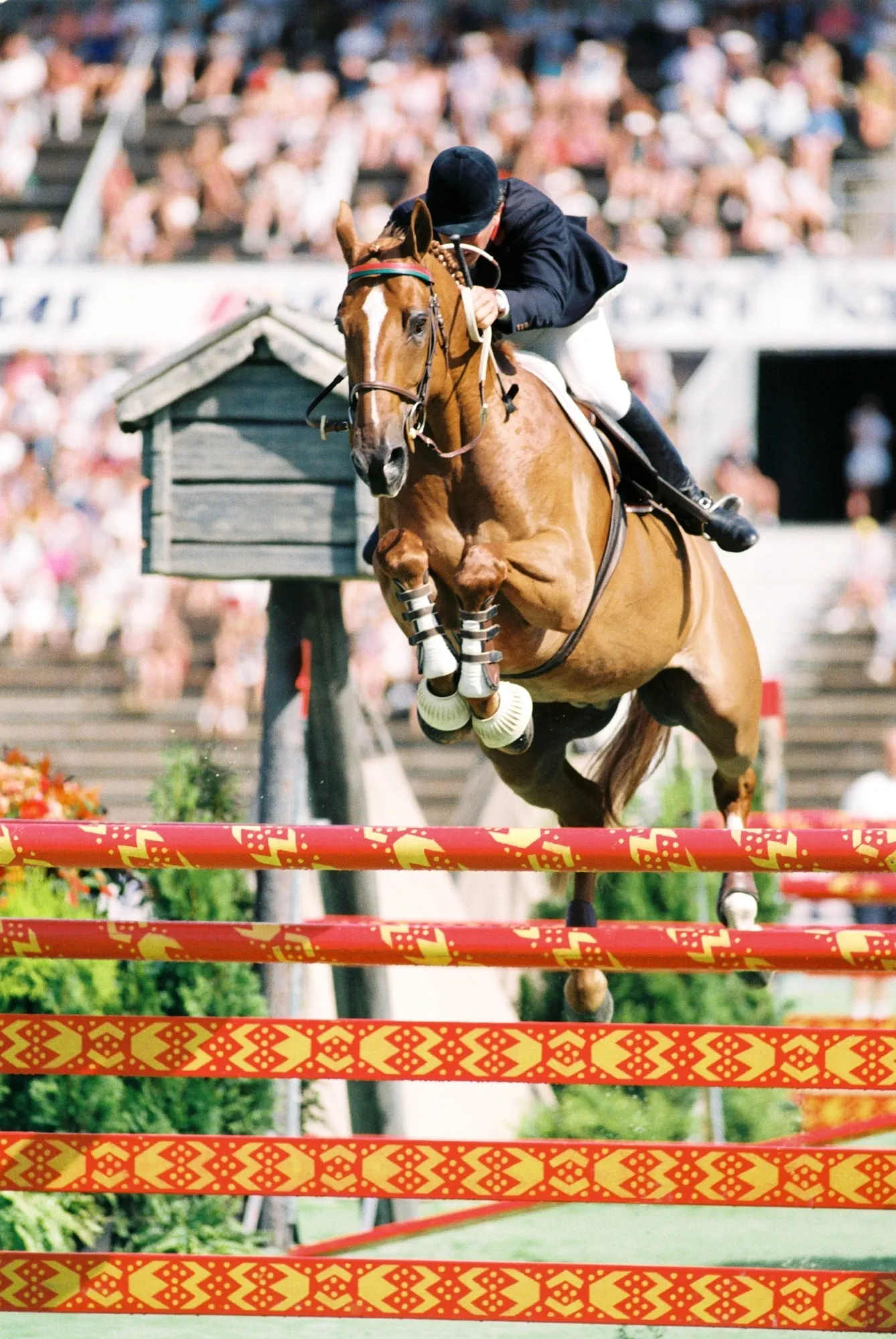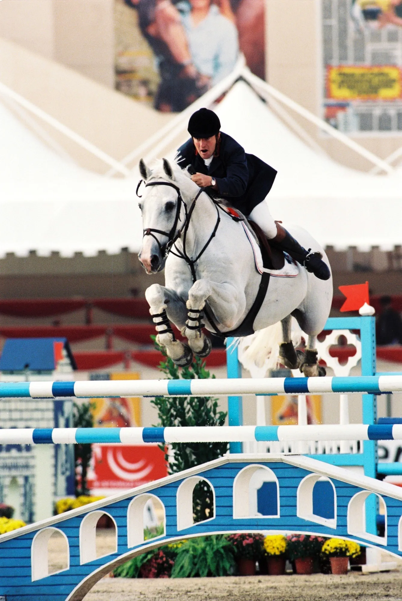 “Souviens Toi était un excellent cheval, très imposant et puissant. Il était très moderne pour l’époque. Je l’aimais beaucoup. S’il concourait aujourd’hui, je suis sûr qu’il pourrait encore tout gagner! Il a eu une vie pas comme les autres. À sa naissance, il était même destiné au dressage! Il a mis quelque temps à arriver dans mes écuries. À nos débuts, j’ai eu du mal avec lui, car il s’arrêtait souvent. Heureusement, nous avons progressé ensemble. Cette magnifique photo a été prise sur le dernier obstacle de la seconde manche de l’épreuve par équipes des Jeux olympiques d’Atlanta. Le lendemain, je me rappelle avoir été déçu quand j’ai retrouvé mon cheval boiteux en arrivant aux écuries. Il s’était fait une entorse, ce qui m’avait contraint à déclarer forfait. J’étais triste, mais très content quand même d’avoir vécu cette première expérience. Nous avions participé à la cérémonie d’ouverture, l’ambiance était incroyable! Malgré cela, nous étions vraiment coupés du reste des Jeux. Nous dormions tous ensemble dans une maison à cinquante kilomètres d’Atlanta, pas au village. En fait, pour nous, cette compétition ressemblait davantage à un gros CSIO et nous ne nous rendions pas compte de ce que nous vivions. À Rio, l’an passé, c’était beaucoup mieux car nous avons vraiment baigné dans l’ambiance olympique.”