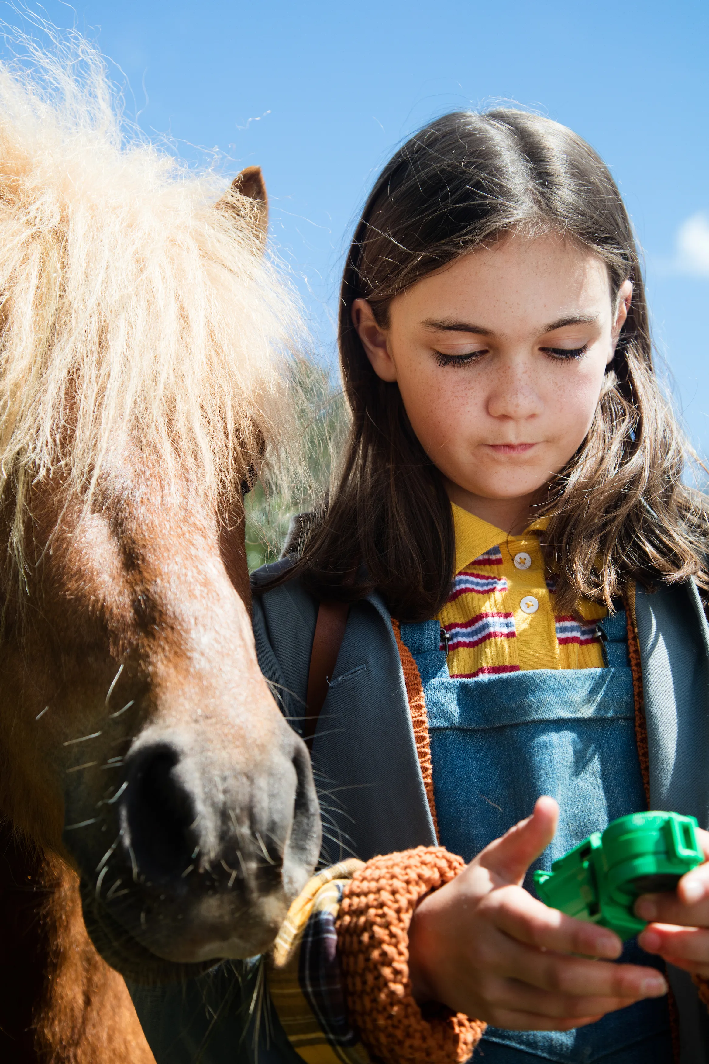 Hullysse et Jack, ses poneys, ont notamment apporté leur contribution au film grâce à l’une de leur figure de prédilection. “Ils ont réalisé la plupart des scènes de coucher du film car ces figures leur étaient déjà familières. Je les connais depuis des années et ils ont l’habitude de travailler avec des enfants, ce qui nous a facilité la tâche pour certaines scènes comme celle de la sieste, dans laquelle Cécile et Poly sont couchés l’un contre l’autre. Jack était d’ailleurs pensionnaire d’un poney-club avant que je le récupère. Ce sont également des hongres tous les deux, ce qui rend les choses plus faciles”, raconte leur propriétaire.