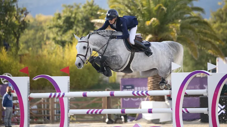 Lors du CSI 4* de Saint-Lô, Arqana de Riverland a une nouvelle fois fait parler d’elle en prenant la deuxième place du Grand Prix phare à 1,55m très relevé. Issue d’une très bonne lignée maternelle, la grise est en passe d’atteindre le plus haut niveau sous la selle de la Tricolore Juliette Faligot, qui la monte depuis près de quatre ans et “ne compte pas s’en séparer”. Portrait d'une future crack en pleine explosion.