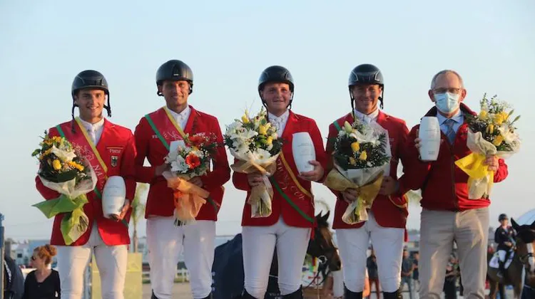 Le soleil portugais a souri cet après-midi à l’équipe d’Allemagne, qui a empoché la victoire dans la Coupe des nations de Vilamoura. Deuxièmes au coude-à-coude avec la France, l’Irlande, les Pays-Bas et Portugal après la première manche, les cavaliers allemands ont su tirer leur épingle du jeu lors de leur second passage de cette première Coupe des nations de la saison pour l’Europe de l’ouest. La France menée par Thierry Pomel a conservé la deuxième place au classement, tandis que l’équipe d’Italie est redescendue de la première à la troisième marche du podium.