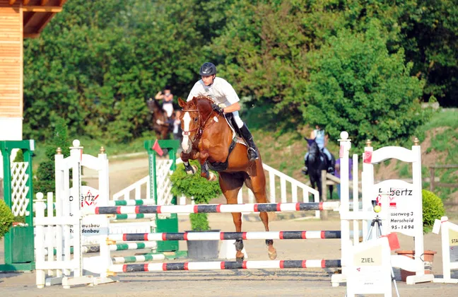 Ce n’est qu’à l’âge de six ans que la fille de For Pleasure a foulé pour la première fois un terrain de compétition. Pourtant, dès l’année suivante, la brillante Fit For Fun fait déjà ses débuts internationaux. “Je la montais moi-même à cette époque et notre réussite la plus marquante reste le concours international réservé aux jeunes chevaux d’Hachenburg. Bien que nous ayons commis une faute sur le dernier obstacle de la finale, plusieurs potentiels acheteurs m’ont contacté après cette compétition. Cependant, et comme je voulais l’utiliser à l’élevage après sa carrière sportive, je n’ai jamais voulu la vendre”, confesse Ralf Jünger.