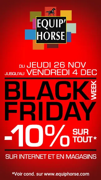 En ce moment et jusqu’au Vendredi 4 Décembre seulement, profitez de la Black Week en magasin et sur www.equiphorse.com.