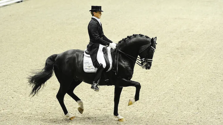 La mort du légendaire Totilas, emporté par des coliques dans la nuit de lundi 14 décembre, a été annoncée aujourd’hui par Eurodressage.com. Âgé de vingt ans, il aura marqué pour toujours l’histoire du dressage en ne faisant qu’un avec le Néerlandais Edward Gal. Cédé pour une somme record à l’apogée de sa carrière, il n’a ensuite plus jamais retrouvé le même éclat sous les couleurs de l’Allemagne et la selle de Mathias Alexander Rath. Blessé coup sur coup, il est sorti de scène sur une blessure, face à son public déconfit, aux Européens d’Aix-la-Chapelle. Retour sur le destin fait de paillettes et de scandales d’un génie inoubliable.