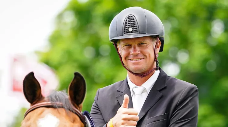 À l’occasion de ce dernier rendez-vous 5* du jour, conclu en début d’après-midi, peu de cavaliers ont réellement couru après le chronomètre sur le tracé d’obstacles à 1,50m imaginé par Frédéric Cottier. Parti en quatrième, Jérôme Guéry a déroulé avec fluidité sur Eras Ste Hermelle, concluant son parcours en 67“63 et à la pole position… qu’il n’a jamais quittée ! Personne n’est en effet venu inquiéter le Belge, la majorité des concurrents privilégiant un sans-faute soigné afin de préparer les prochains grands rendez-vous du week-end. Avec un chronomètre de 68“78, l’Irlandais Shane Sweetnam s’est incliné avec Indra van de Oude Heihoef, sa fille de Casandro de treize ans. Parti en avant-dernier avec Lord de Muze, son fils de Nabab de Rêve de dix ans qui gravit rapidement les échelons du haut niveau, Mathieu Billot a complété le trio de tête en 69“46. Le Normand s’élancera demain dans la Coupe des nations avec Quel Filou de Muze. Il sera aux côtés de Nicolas Delmotte, dont Urvoso du Roch a été le seul cheval du quatuor sélectionné par Thierry Pomel à concourir dans ce prix FFE Equi’Action. Au bout d’un bon parcours de mise en jambes, le Selle Français de treize ans a pêché sur la première barre de l’ultime oxer sur bidet, dont les barres peintes dans la longueur ont tendance à créer un effet d’optique pour les chevaux.