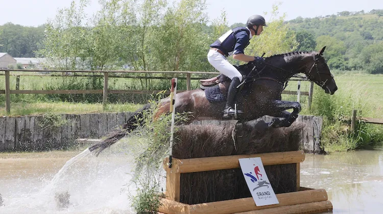 Premiers ex æquo avec le lieutenant-colonel Thibaut Vallette et Qing du Briot*IFCE après le dressage, Thomas Carlile et Birmane ont pris seuls la tête de la quatrième étape du Grand National de concours complet, ce midi à Vittel. Dans le cadre idyllique du golf de la station thermale vosgienne, le Toulousain établi dans la Sarthe et sa jument de dix ans ont signé l’un des huit parcours parfaits du jour. Pénalisés de quatre secondes de dépassement de temps, leur principaux rivaux, deuxièmes, devancent Astier Nicolas, Christopher Six et Nicolas Touzaint, en embuscade avec Babylon de Gamma, Totem de Brécey et Absolut Gold*HDC. La sélection olympique s’annonce cornélienne.