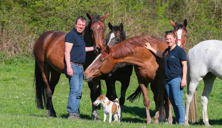 Maîtrisant son sujet, Michel Guiot, Docteur en médecine vétérinaire, a clairement défini la manière dont il souhaitait développer son élevage depuis toutes ces années. “Nous avons la chance de vivre en Argonne, une région mitoyenne entre les Ardennes, la Meuse et la Marne, très boisée et très herbagère avec de très bonnes pâtures. Le succès de notre élevage repose aussi sur la qualité des herbages dont nous disposons car nous n’élevons pas nos chevaux aux granulés, mais bien à l’herbe et, en hiver, avec du foin que nous produisons nous-mêmes. Les chevaux vivent dehors de fin mars à mi-décembre. Le reste de l’année, ils évoluent dans des stabulations libres où ils peuvent voyager et sortir tout en disposant de foin à volonté. Cela produit des animaux résistants présentant de bonnes visites vétérinaires. Nous réalisons des bilans radiographiques à la fin de leur année de deux ans, et ceux qui ne sont pas satisfaisants ne sont pas conservés. »