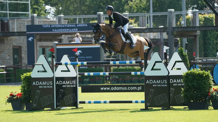 Point d'orgue du week-end de compétition organisé par Jan Tops dans ses installations de Valkenswaard, le Grand Prix CSI 5* de la ville néerlandaise a vu trente-six couples s'affronter pour la victoire sur un délicat parcours dessiné par l'Italien Uliano Vezzani. Premier à s'élancer, le Néerlandais Kevin Jochems a laissé trois barres à terre avec Turbo Z (Z, Thunder van de Zuuthoeve x Renville). Après l’abandon d’Alexandra Thornton et le parcours à huit points de Julien Épaillard, qui étaient en compagnie de Cornetto K (HANN, Cornet Obolensky x Calido I) et Solero MS (HANN, Silvio I x Espri), Jos Verlooy semblait en passe de réaliser le premier sans-faute de la journée aux rênes de Luciano van het Geinsteinde (BWP, Quinn van de Heffinck x Air Jordan), mais le cavalier belge a mis à terre le dernier obstacle. Le premier parcours parfait a finalement été réalisé par le neuvième couple au départ, formé par Luciana Diniz et Conchento PS (OS, Conthargos x Chacco-Blue). Les sans-faute se sont ensuite succédé à un rythme effréné et douze paires - dont plusieurs s'envoleront bientôt pour les Jeux olympiques de Tokyo, à commencer par Simon Delestre et Berlux Z (Z, Berlin x Major de la Cour) - se sont qualifiées pour le barrage, mais certains cavaliers très en forme ont échoué à obtenir leur qualification pour cette finale au chronomètre. Ainsi, aux rênes du crack Darry Lou (KWPN, Tangelo van de Zuuthoeve x Nabab de Reve), Nayel Nassar a terminé son premier parcours avec quatre points de pénalité, tout comme Willem Greve et son fidèle Carambole (HOLST, Cassini I x Concerto II), qui s'étaient illustrés plus tôt dans l'année en terminant à la cinquième place du Grand Prix CSI 5* de Bois-le-Duc. Victorieuse dans l'épreuve majeure d'hier, Evelina Tovek a même renversé deux obstacles sur son passage avec le même Winnetou de la Hamente Z (Winningmood vd Arenberg x Socrate de Chivre).