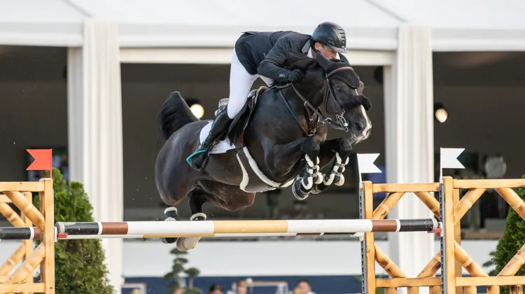 Au barrage, de nombreux cavaliers ont été piégés sur le deuxième obstacle de cette finale ou encore sur le double, avant dernier obstacle du parcours. Cela a été le cas de Julien Épaillard, privé d’une énième victoire pour une faute de Calgary Tame, malgré un chronomètre supersonique de 35’’60, soit trois secondes plus vite que le vainqueur. Première à s’élancer, Margaux Rocuet a mis la pression sur les autres cavaliers en signant un double zéro en 39’’08. Elle a finalement terminé troisième. Son chronomètre a entraîné de nombreux cavaliers à prendre des risques, au prix d’une barre à terre. En toute fin d’épreuve, Titouan Schumacher a délogé la normande avec un Atome Z des grands jours. Avec 38’’93 secondes, le cavalier du haras des Brimbelles a imposé un nouveau chronomètre à battre. Quinzième et dernier à prendre le départ, Axel van Colen a tenté sa chance associé à Veyron. Finalement, il s’est adjugé la victoire pour quatre petits centièmes de moins. Une bien belle performance pour le cavalier français, qui succède à Luciana Diniz et Vertigo du Désert dans cette épreuve !