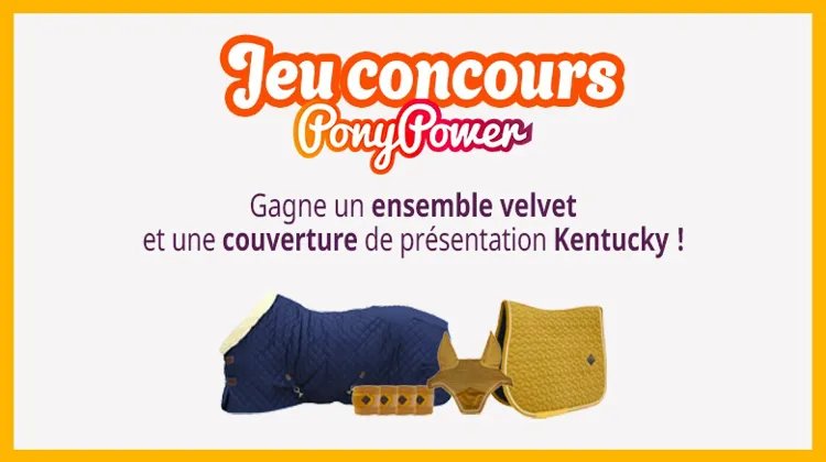 Jusqu'au 28 septembre, la sellerie te propose de gagner un total look velvet et une couverture de présentation Kentucky de la couleur de ton choix d'une valeur totale de 400€.