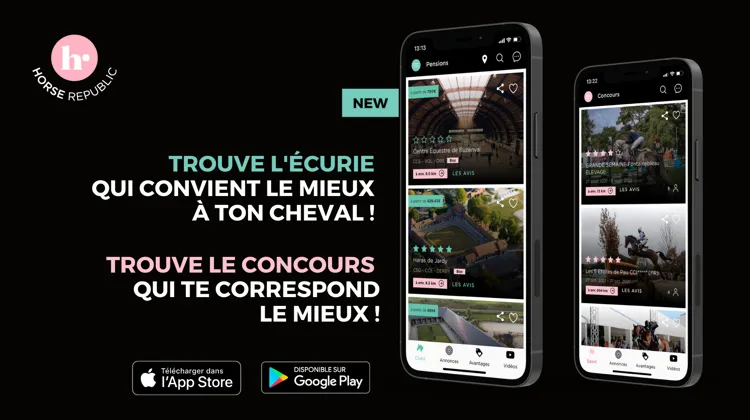 Déjà forte de sa belle popularité pour son accompagnement dans les concours – 63 000 membres à l’heure actuelle –, l’application Horse Republic dévoile de nouvelles options de recherches depuis début septembre. Localisations d’écuries, détails de fonctionnement et avis, petites annonces de matériel et de chevaux, ou encore offres de demi-pension, Horse Republic offre à tout propriétaire ou cavalier un espace de partage et d’informations.