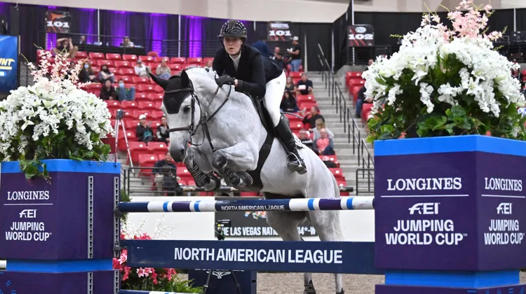 Vingt-neuf couples étaient au départ, hier, du Grand Prix CSI 4*-W de Las Vegas, cinquième des huit étapes de la ligue Nord-Américaine de la Coupe du monde FEI Longines de saut d’obstacles. Très tournant en raison de l’étroitesse de la piste, le parcours long de treize obstacles dessiné par le Brésilien Guilherme Jorge proposait des défis techniques aux couples engagés après chaque virage, et particulièrement dans la dernière ligne, composée de barres de spa suivies à quelque foulées par un vertical. Pour autant, il n’a pas fallu attendre bien longtemps pour qu’un concurrent trouve la clé du tracé, puisque Rowan Willis, qui était le premier à prendre le départ, a franchi la ligne d’arrivée sans aucune pénalité. Il faut dire que l’Australien avait misé sur sa toute bonne Blue Movie, qui avait terminé, entre autres, deuxième du mythique Grand Prix CSIO 5* de Calgary en 2019. Laura Hite, qui portait le dossard numéro neuf, a été la première à le rejoindre au barrage grâce au sans-faute de Calypso vd Zuuthoeve. Juste après, Erynn Ballard, qui terminait deuxième du Grand Prix Coupe du monde de Sacramento il y a quelques semaines, a elle aussi décroché son ticket pour la finale au chronomètre avec Billy Alpen.