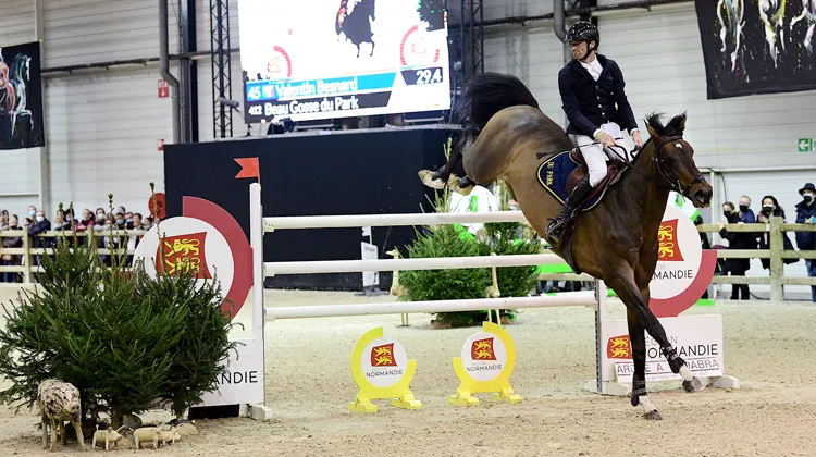 Valentin Besnard a remporté son premier Grand Prix CSI 4*, la plus belle victoire de sa carrière, cet après-midi au Parc des expositions de Rouen, en conclusion d’Équi Seine. En selle sur le bouillonnant Beau Gosse du Park, le Normand a signé le seul double sans-faute d’un barrage ô combien singulier. Déjà cinquième le mois dernier à Saint-Lô, le couple frappe désormais à la porte de l’équipe de France. Le Belge Gilles Thomas et le Néerlandais Kevin Jochems ont complété le podium de cette épreuve cotée à 1,55m avec Luna van het Dennehof et Emmerton.