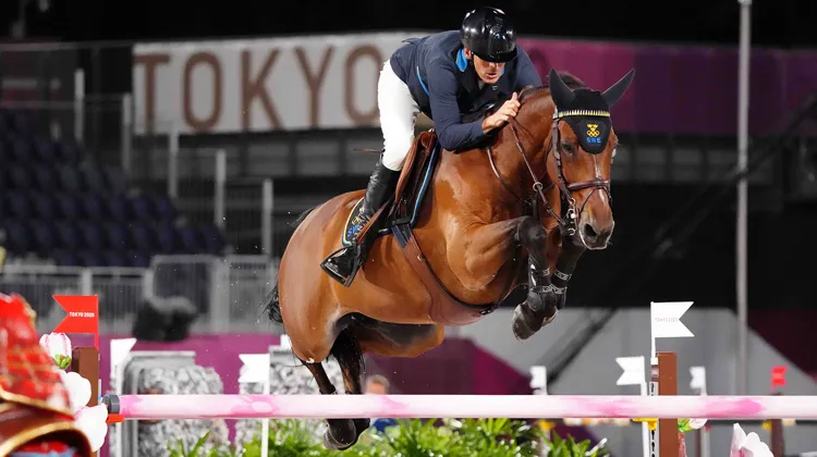 De décembre 2019 à avril 2021, All In reste près d’un an et demi sans fouler un terrain de concours international. Au printemps, il effectue un retour progressif à la compétition, d’abord sur des épreuves à 1,40m, avant de retrouver les Grands Prix à 1,60m lors d’une étape du Longines Global Champions Tour disputée à Valkenswaard. Aux Pays-Bas, le bai ne commet qu’une faute sur un vertical très clair en début de parcours. Il est ensuite aligné dans l’épreuve majeure du CSI 5* de Stockholm, où il écope cette fois de huit points, puis retourne à Rotterdam, où il signe un beau double sans-faute dans le Grand Prix CSIO 5*, dont il prend la cinquième place. Une performance suffisante pour convaincre Henrik Ankarcrona, chef d’équipe de la Suède, d’embarquer le fils de Kashmir van Schuttershof dans ses valises pour les Jeux olympiques de Tokyo, où le petit hongre va largement participer au triomphe suédois.