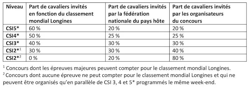 De plus, il leur faudrait attendre une semaine supplémentaire avant l’attribution définitive de ces invitations en vertu du classement mondial. En effet, dans la mesure où les fédérations nationales conservent le pouvoir de valider ou non les demandes effectuées par leurs cavaliers, la FEI a prévu de leur laisser un laps de délibération leur permettant également d’effectuer leurs sélections en CSIO ou CSI-W. Les délais pourraient donc encore être ajustés, et adaptés au cas par cas pour des concours tels que ceux de Hong Kong et Calgary, mais ce principe devrait bien être testé durant plusieurs semaines en 2019.