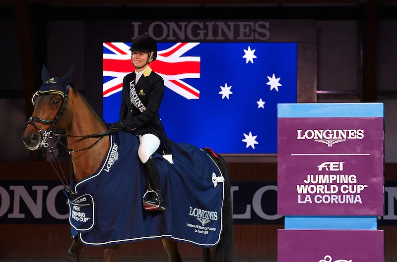 Après sa victoire dans le Grand Prix du Longines Masters de Paris dimanche dernier avec California, l’Australienne Edwina Tops-Alexander s’est imposée ce soir dans le Grand Prix Coupe du monde Longines de La Corogne avec le SF Vinchester, conservant son titre acquis l'an passé. Belle cinquième place d’Olivier Robert et Tempo de Paban.